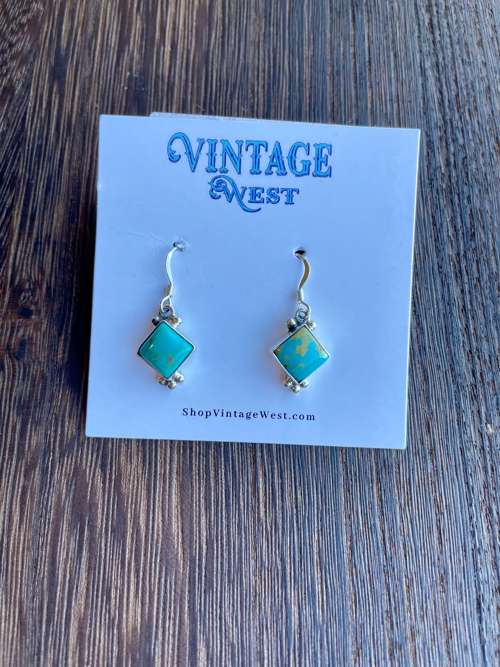 Handcrafted by Sharon McCarthy, these unique turquoise and sterling silver dangles combine timeless elegance with artisanal skill.