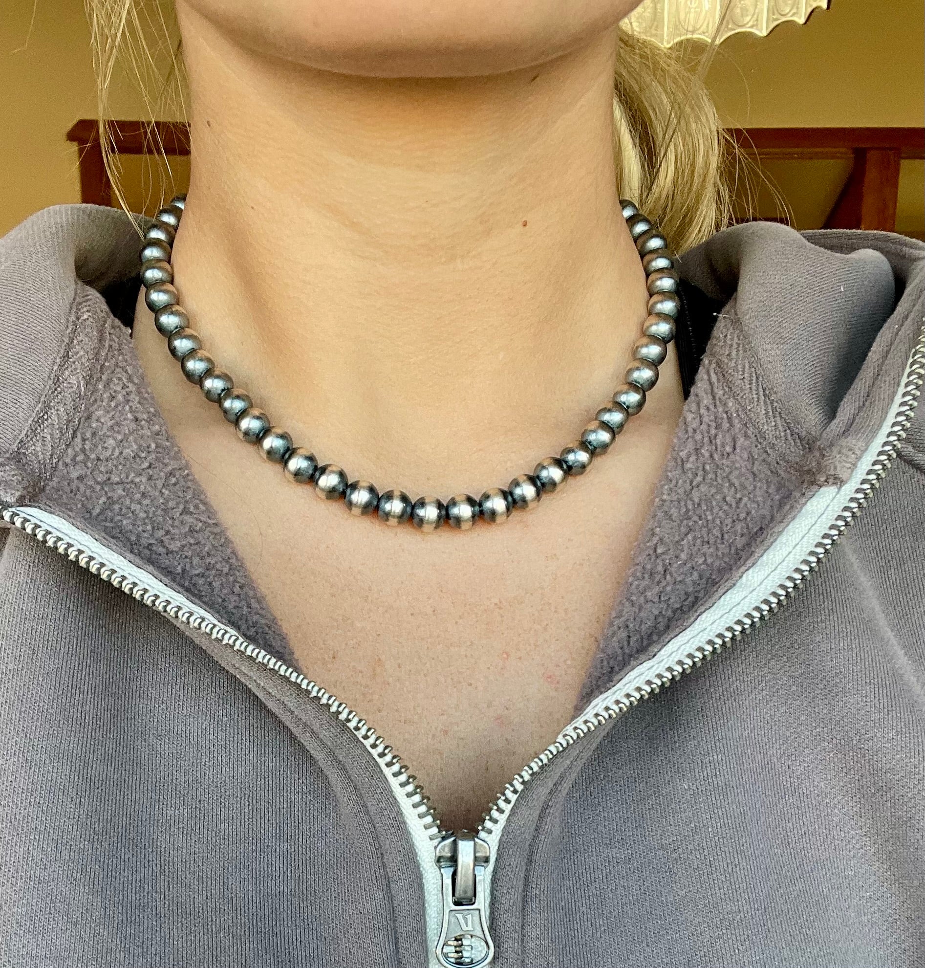 Navajo Style pearls- Machine Made Sterling Silver pearls
