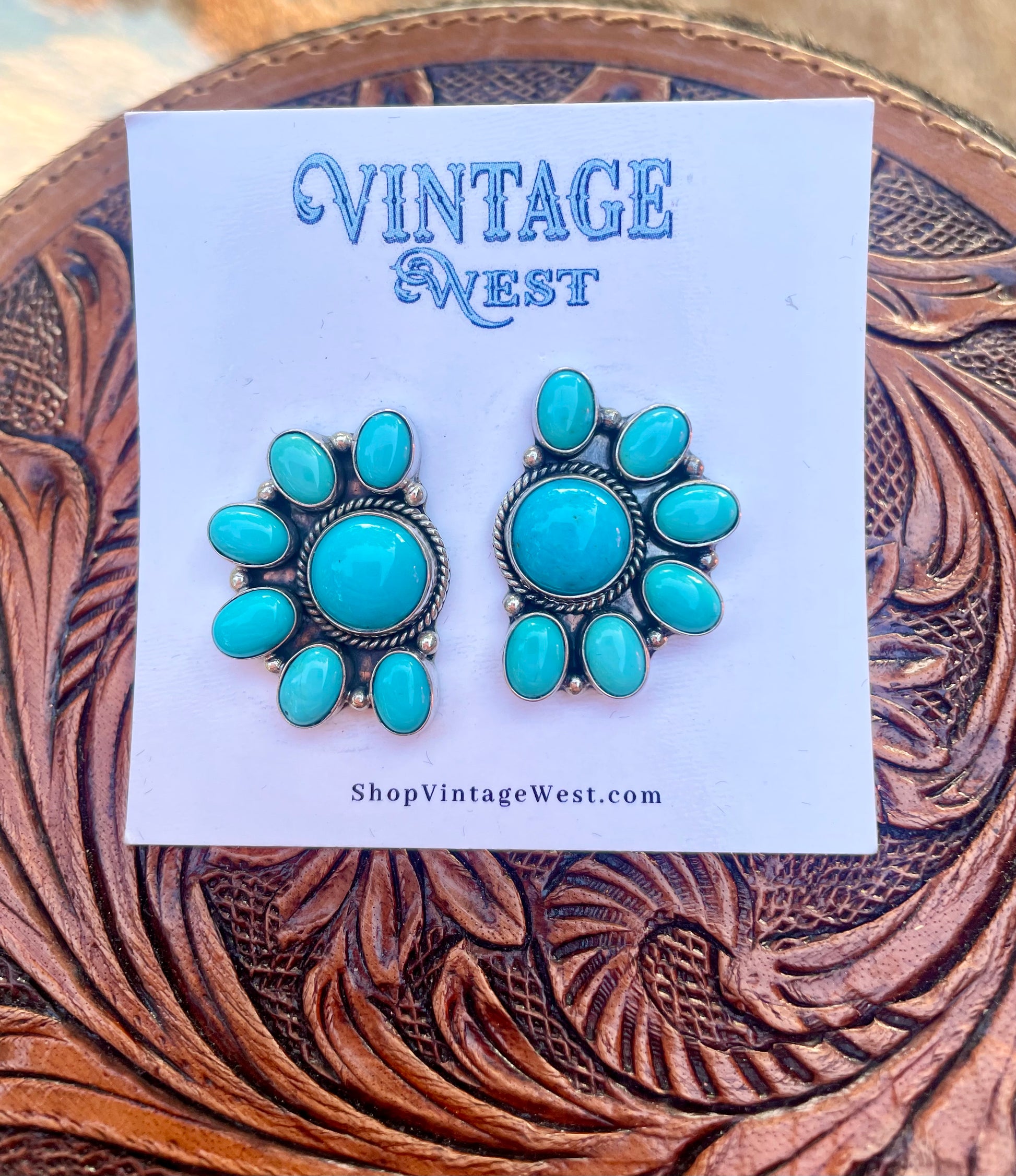 Gorgeous half cluster turquoise stud earrings