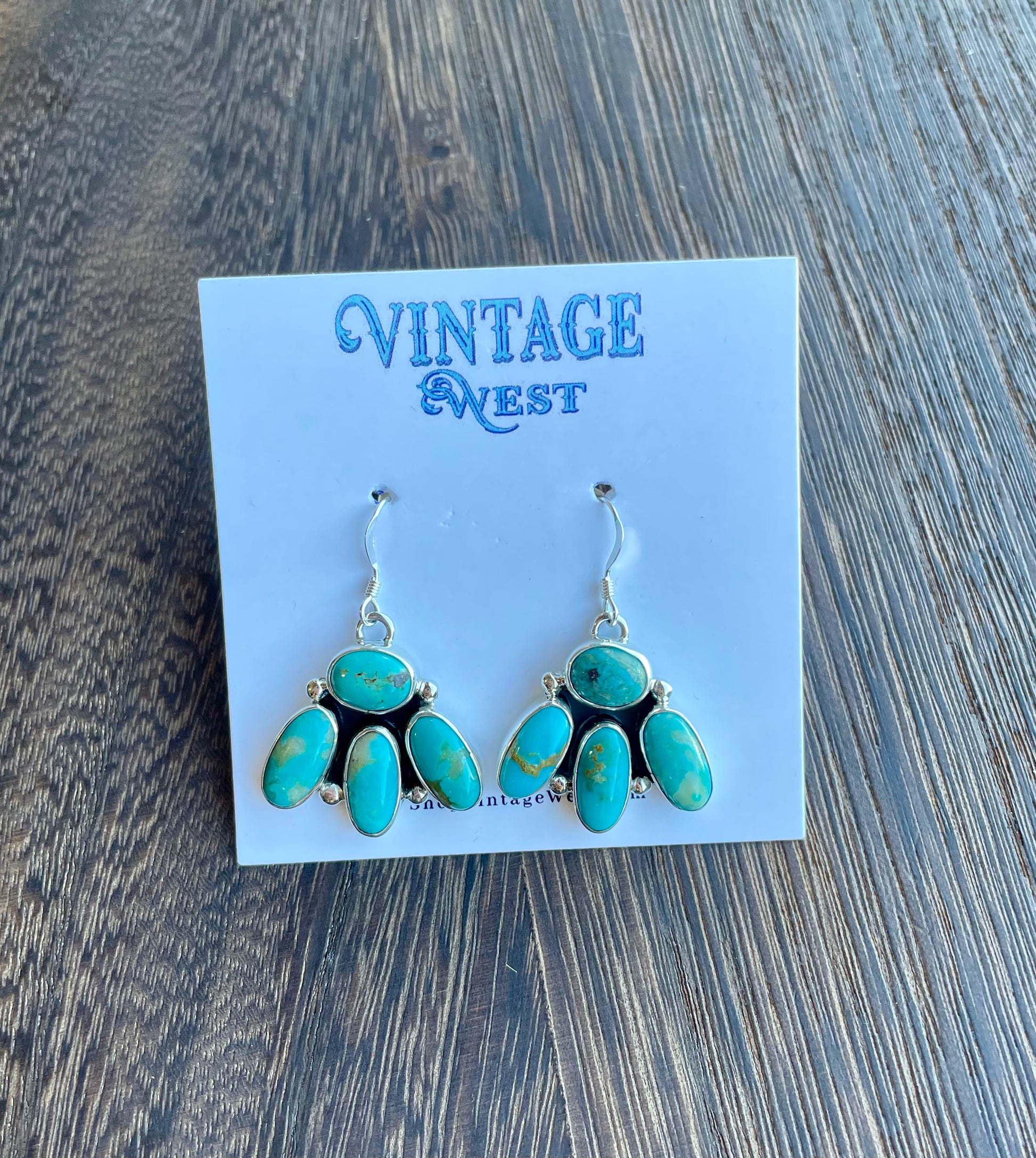 The Belle's earrings feature four beautiful turquoise stones, each hand-made by skilled Native artisans in New Mexico. These earrings blend authentic craftsmanship with vibrant natural colors, offering a meaningful accessory that celebrates heritage and style. They’re perfect for adding a touch of Southwestern charm to any outfit.
